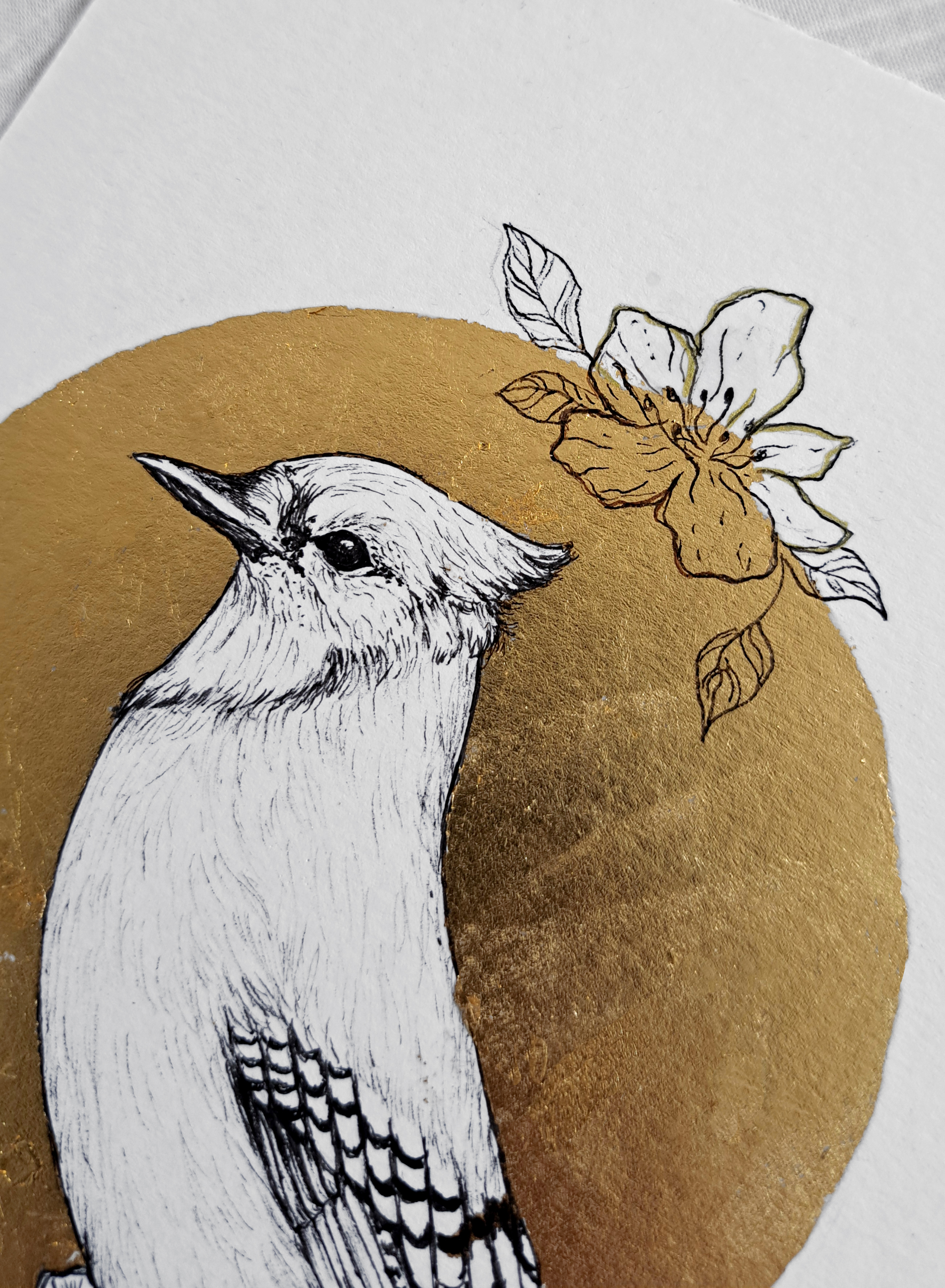 #drawing #bird #blackandwhite #painting #art #design #abstract #gold #goldleaf #gilding #delafee